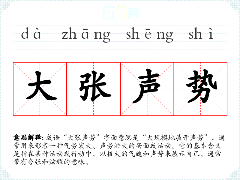 | 大张声势 | 大造声势,扩大影响。 |