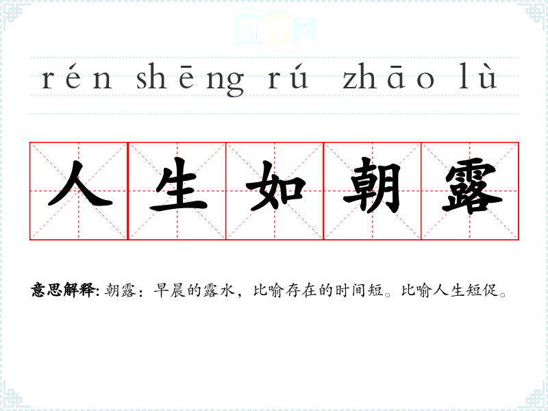 | 人生如朝露 | 朝露:早晨的露水,比喻存在的时间短。比喻人生短促。 |