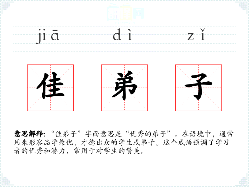 | 佳弟子 | 佳:好,优。指德才超群的晚辈。 |
