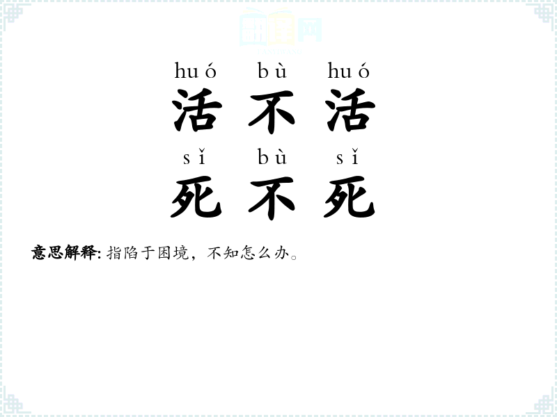 说死没死,说活未活。形容没有生气或处境尴尬。 |