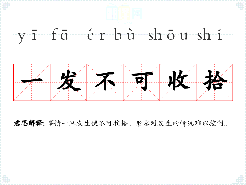 事情一旦发生便不可收拾。形容对发生的情况难以控制。 |