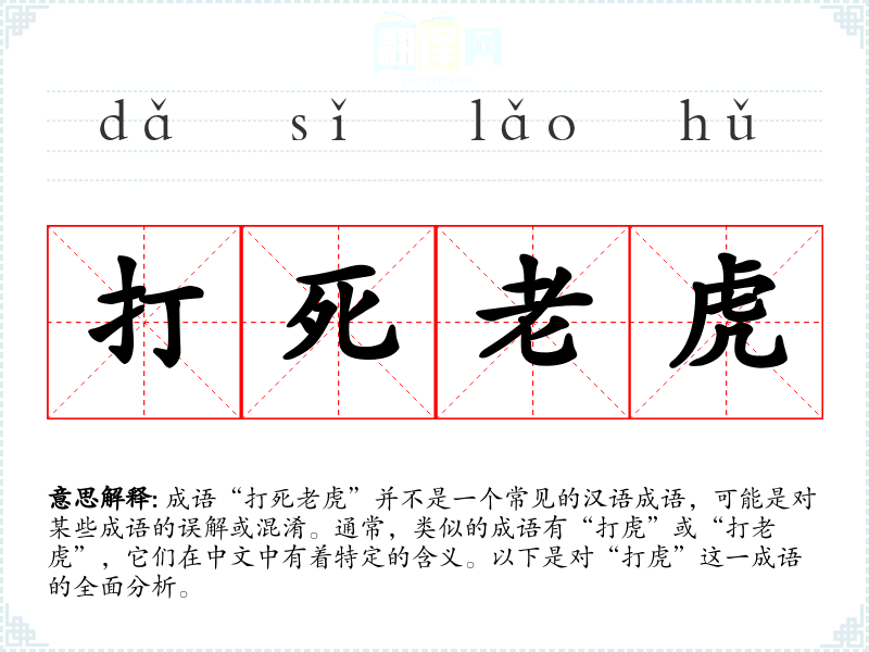 成语“打死”并不是一个常见的汉语成语,可能是对某些成语的误解或混淆。通常,类似的成语有“打虎”或“打”,它们在中文中有着特定的含义。以下是对“打虎”这一成语的全面分析。