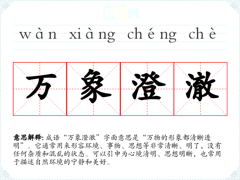 - 日常对话:可在谈论心情或思维状态时使用,如“经过一番反思,我的心境终于万象澄澈”。