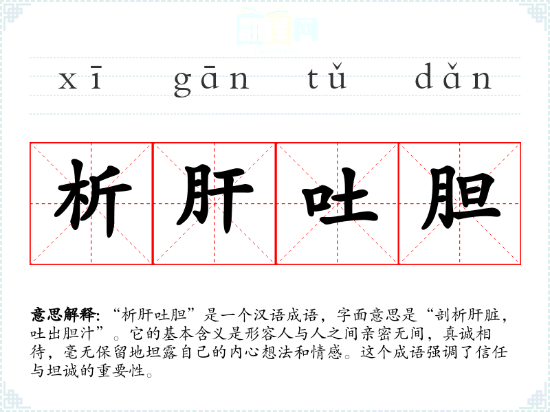 - 日常对话:用于描述朋友间的坦诚交流,如“我们是好朋友,应该析肝吐胆,互相了解”。
