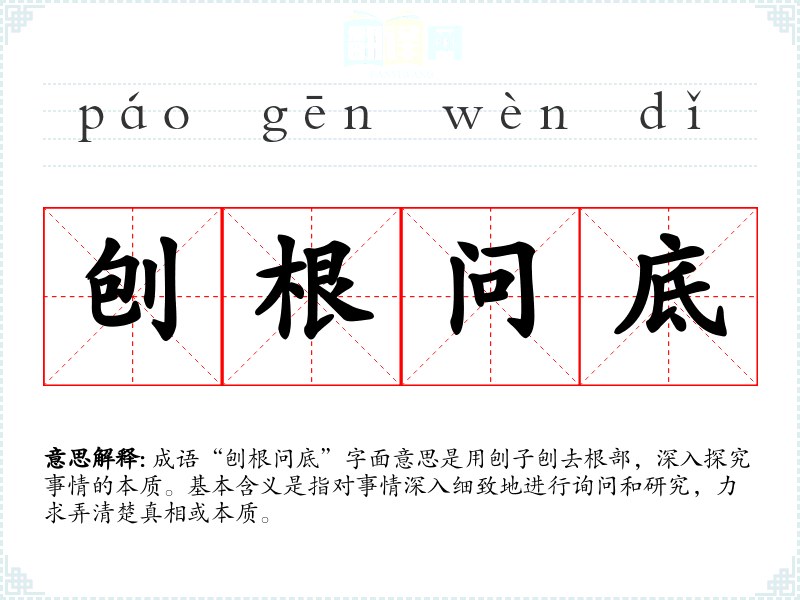 成语“刨根问底”字面意思是用刨子刨去根部,深入探究事情的本质。基本含义是指对事情深入细致地进行询问和研究,力求弄清楚真相或本质。