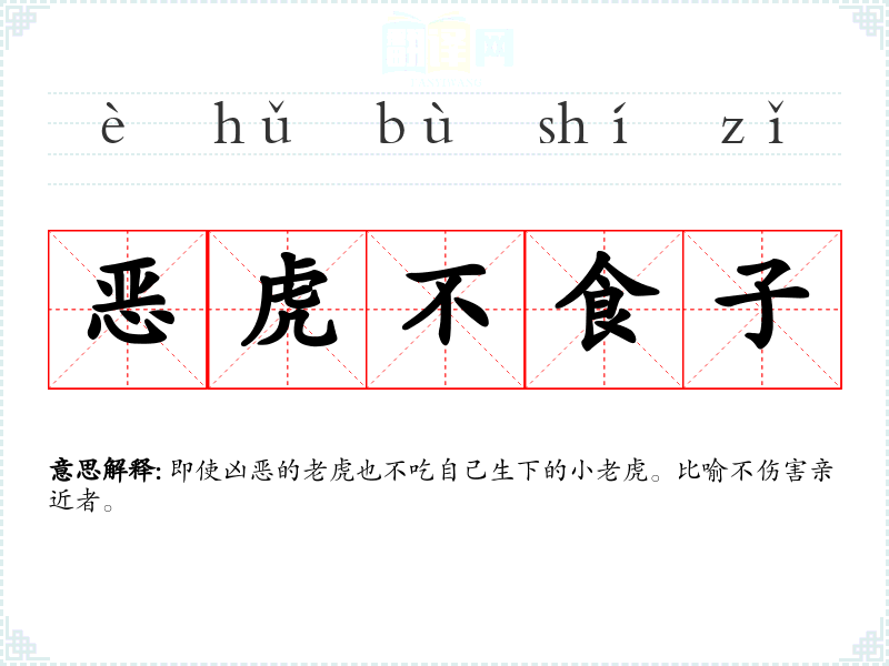 即使凶恶的老虎也不吃自己生下的小老虎。比喻不伤害亲近者。
