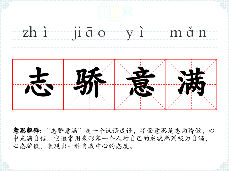 “志骄意满”是一个汉语成语,字面意思是志向骄傲,心中充满自信。它通常用来形容一个人对自己的成就感到极为自满,心态骄傲,表现出一种自我中心的态度。