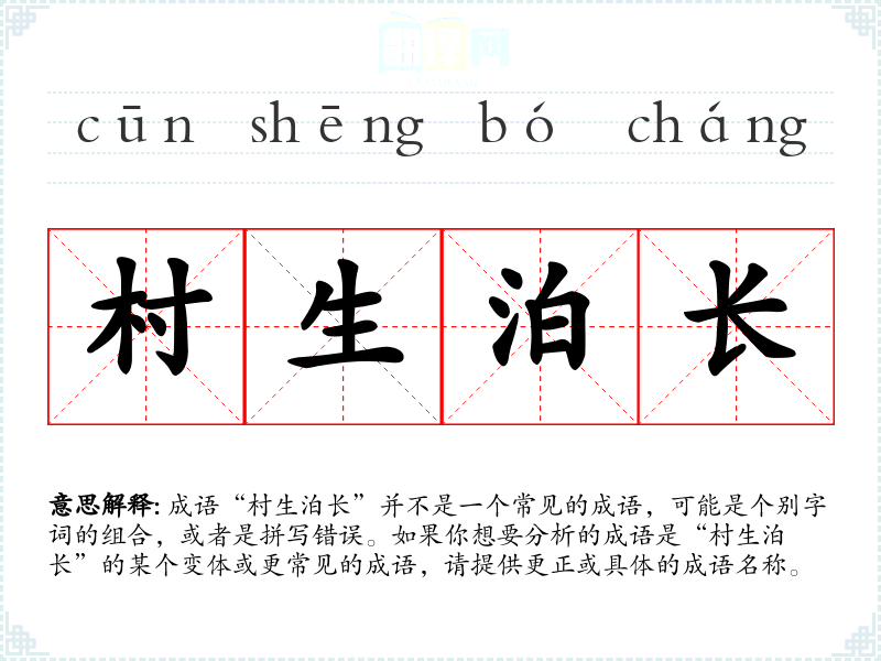成语“村生泊长”并不是一个常见的成语,可能是个别字词的组合,或者是拼写错误。如果你想要分析的成语是“村生泊长”的某个变体或更常见的成语,请提供更正或具体的成语名称。