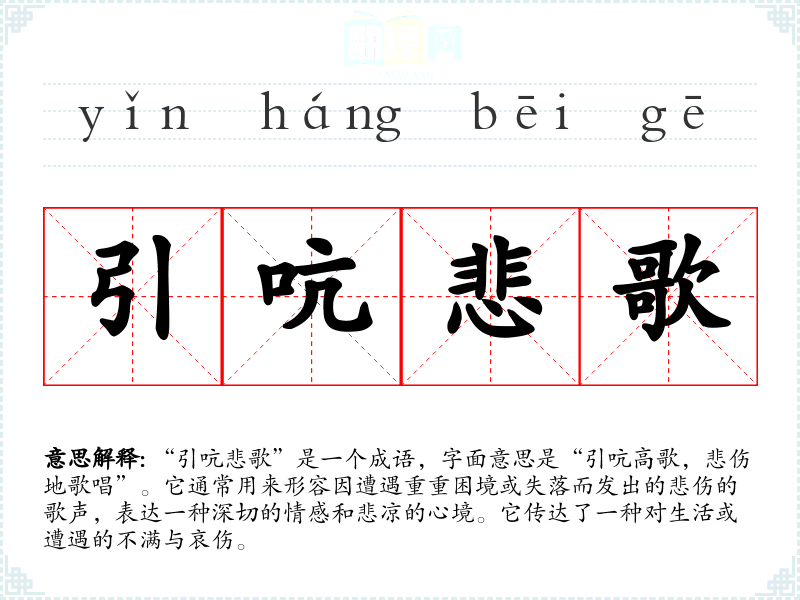 在文学作品中,“引吭悲歌”常用于描绘人物在困境中所表现的情感,或用以讽刺社会的不公。在日常对话中,人们可以用它来形容某人因遭遇不幸而发出的声音,如失落的情感宣泄。在演讲或文章中,使用这一成语可以有效地传递情感的深度,引起听众或读者的共鸣。
