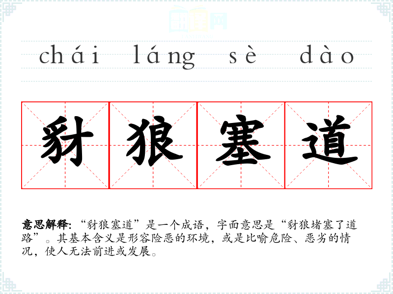 - 反义成语:如“春风得意”、“一帆风顺”等,表示顺利和美好的情境,反映出与“豺狼塞道”截然不同的意思。