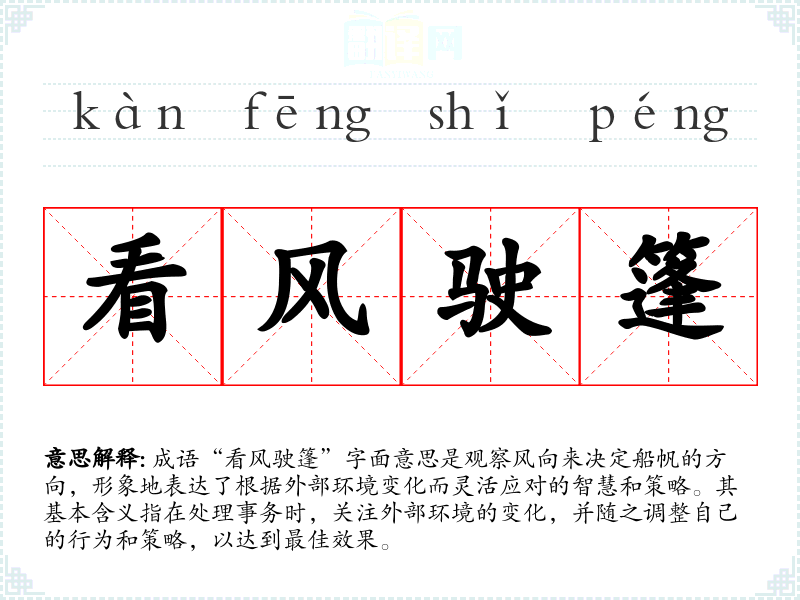 通过对“看风驶篷”的学,我深刻理解到在生活和工作中,灵活应变的重要性。这不仅仅是一种应对策略,更是一种生活智慧。在语言学中,掌握这样的成语,丰富了我的表达能力,也让我在思考问题时更加全面。