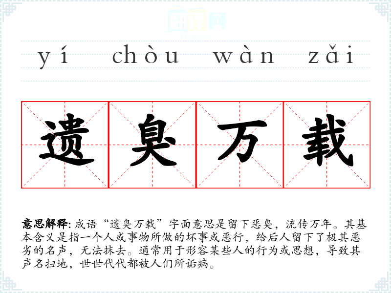 | 万年遗臭 | 遗臭:死后留下的恶名。死后恶名一直流传,永远被人唾骂。 |