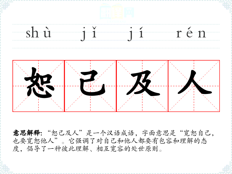 | 恕己及人 | 对别人就像对自己一样宽恕。 |