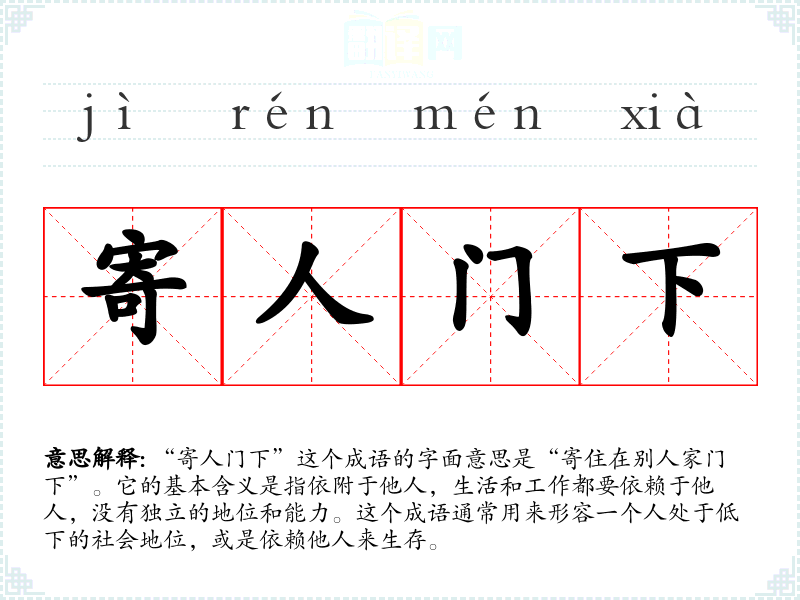 “寄人门下”在**传统文化中具有深刻的社会背景,反映了士人对地位、尊荣的追求和对独立生活的渴望。在现代社会,这一成语仍然适用,特别是在职场中,强调了个人的能力和独立性的重要性。