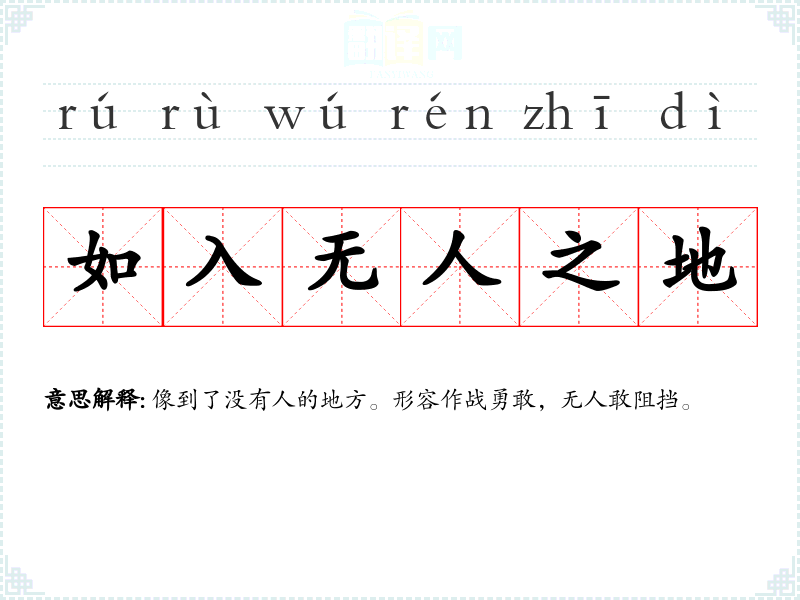 像到了没有人的地方。形容作战勇敢,无人敢阻挡。 |