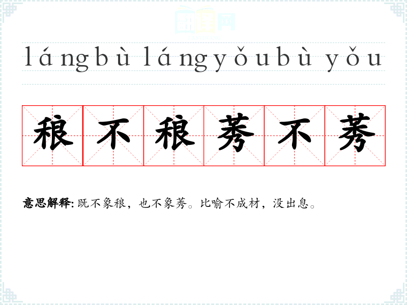 | 稂不稂莠不莠 | 既不象稂,也不象莠。比喻不成材,没出息。 |