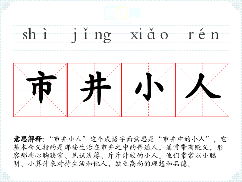 | 市井小人 | 指城市中庸俗鄙陋之人。 |