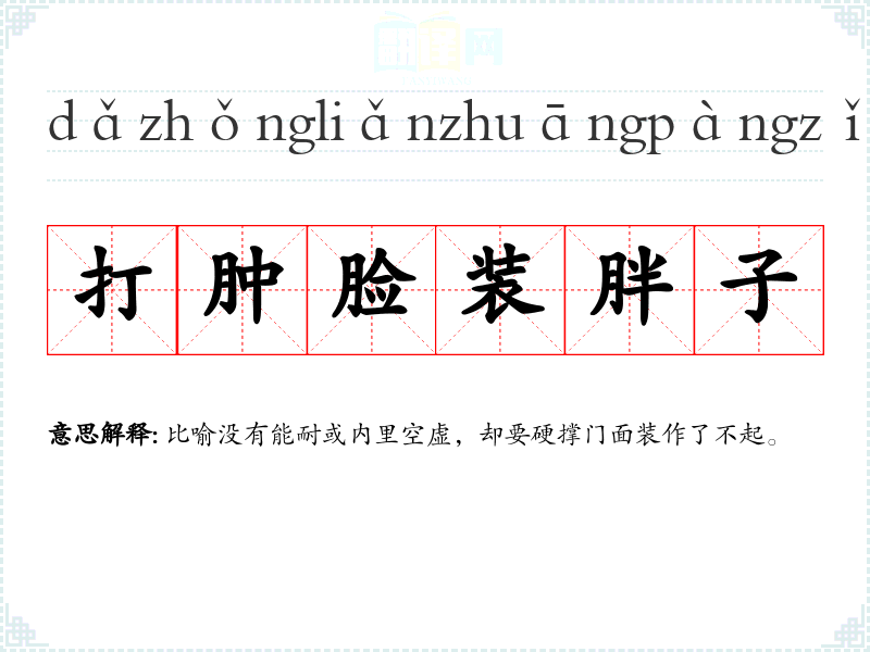 比喻没有能耐或内里空虚,却要硬撑门面装作了不起。 |