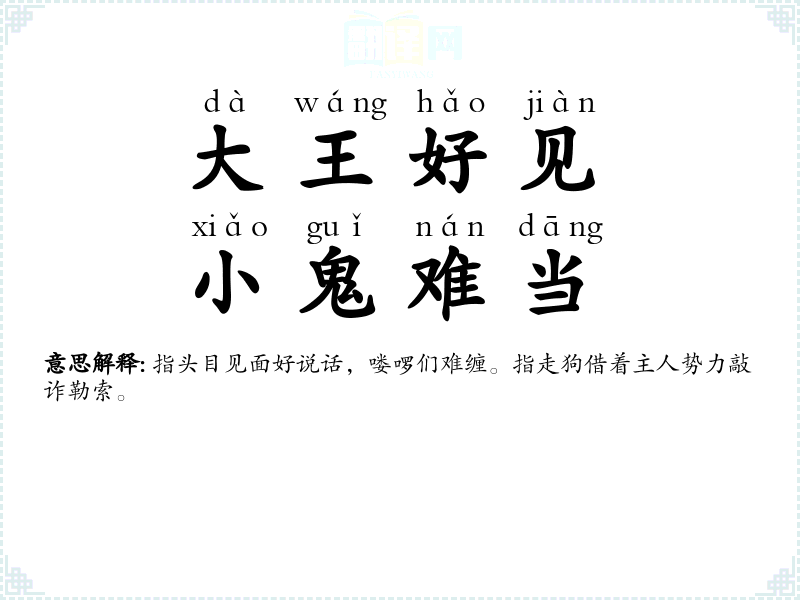许多小鬼戏弄判官。剧目名。旧时也比喻居上位者被对自己不满或轻蔑的人所戏弄。 |