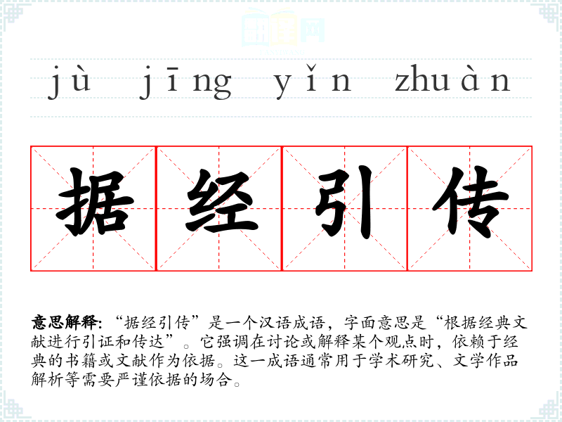 - 日常对话:在讨论某个历史或文化问题时,人们可能会提到“据经引传”来说明其观点的依据。