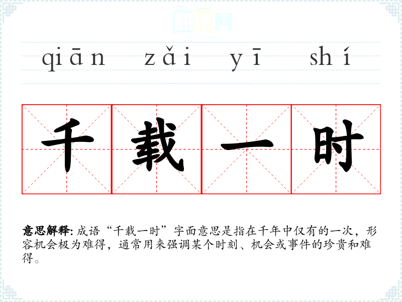 “千载一时”最早可以追溯到《庄子》,其中提到“千载之期”,强调时间的稀缺性。它反映了古代人们对时间的重视和对机会的珍视。成语的使用不仅体现了语言的丰富性,也反映了古人对人生哲学的深刻理解。