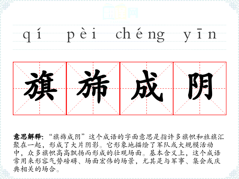 - 文学作品:在描写战争或**场景时,可以用“旗旆成阴”来形容气势。