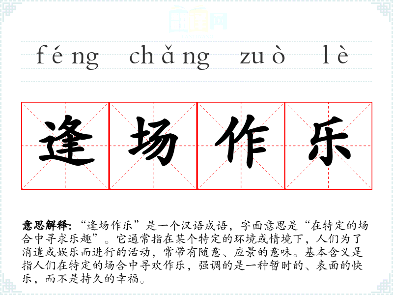 - “作乐逢场”则更强调在特定场合中的乐趣。