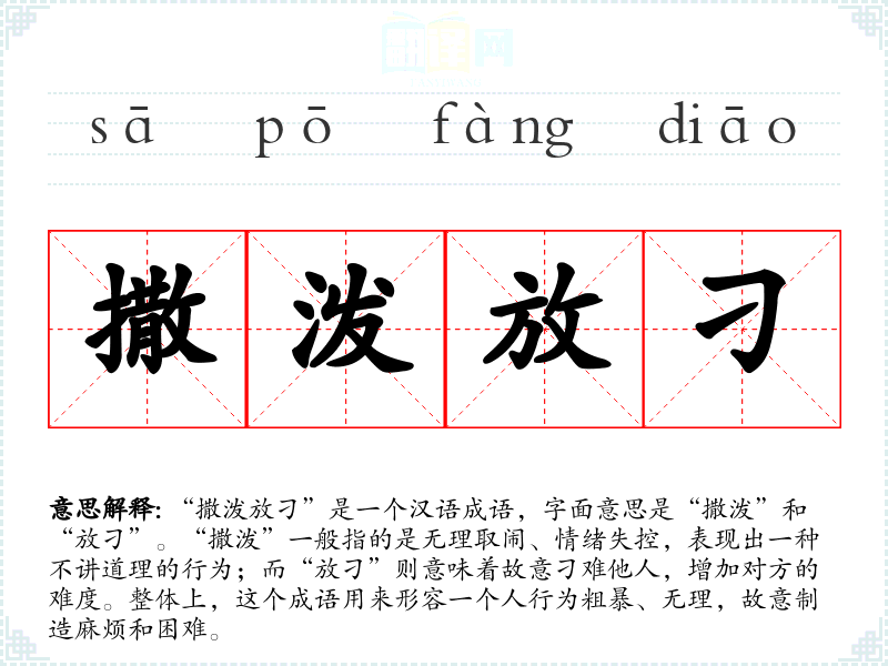 - 日常对话:在朋友间的闲聊中,常用来形容某人对待他人的态度,比如“他最近对同事撒泼放刁,让大家都很烦。”