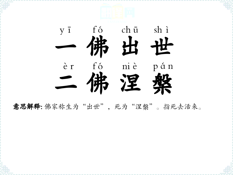 升天:死亡;出世:生。佛出生又死去。指活过来又死去 |