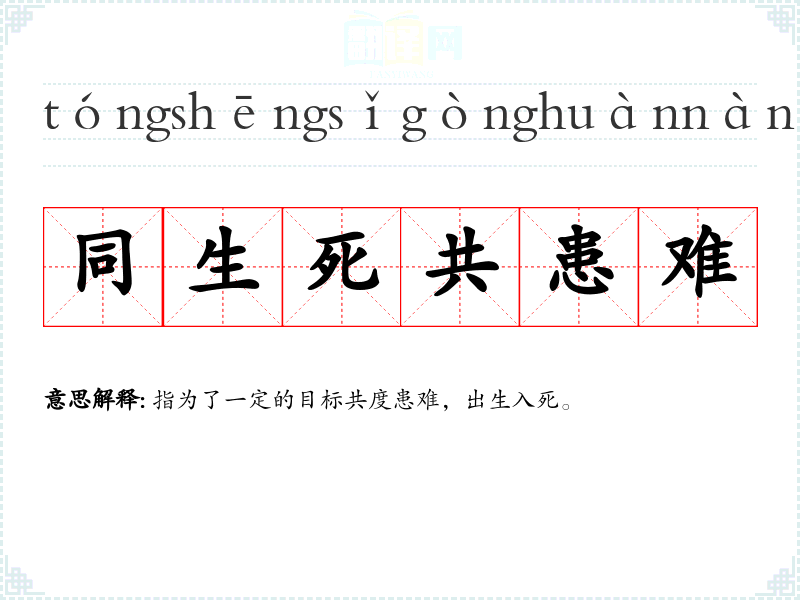 ①指同欢乐共忧患。形容关系密切,利害一致。②偏指共患难。亦作“同休等戚”。 |