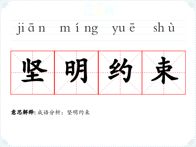 | 坚明约束 | 坚:坚守;约束:信守诺言。坚守同盟,信守盟约。 |