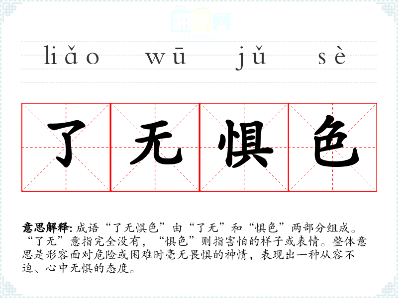 通过对“了无惧色”的学,我认识到它不仅仅是一个成语,更是生活中一种值得追求的态度。在语言学中,掌握这样的成语可以丰富我们的表达方式,增强沟通的力量。