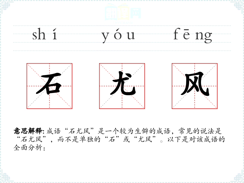 成语“石尤风”是一个较为生僻的成语,常见的说法是“石尤风”,而不是单独的“石”或“尤风”。以下是对该成语的全面分析: