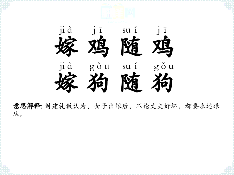 | 嫁鸡随鸡,嫁狗随狗 |