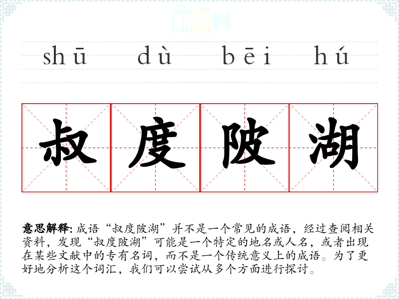 成语“叔度陂湖”并不是一个常见的成语,经过查阅相关资料,发现“叔度陂湖”可能是一个特定的地名或人名,或者出现在某些文献中的专有名词,而不是一个传统意义上的成语。为了更好地分析这个词汇,我们可以尝试从多个方面进行探讨。