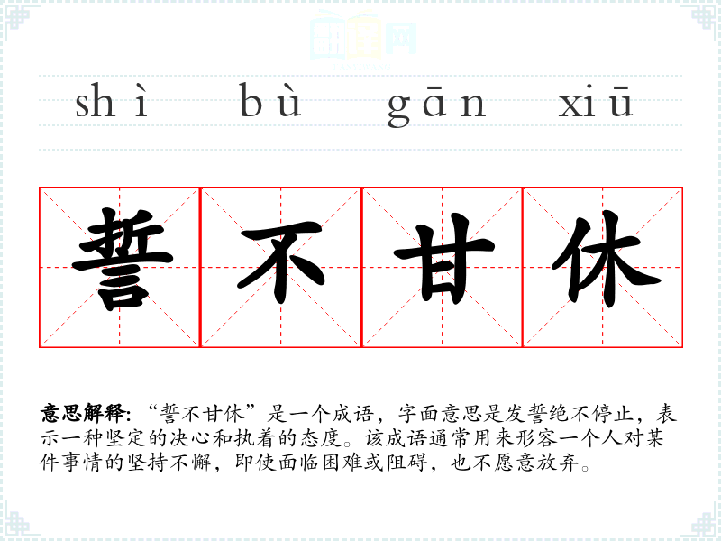 - 坚持不懈:强调持续不断的努力,和“誓不甘休”相似。