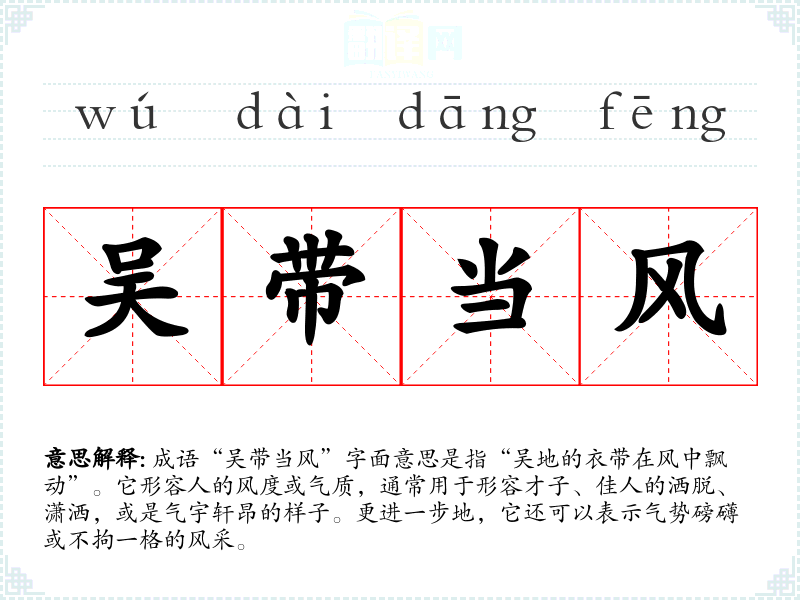 在英语中,没有直接对应的成语,但“graceful”一词可以传达出相似的优雅和风采。在西方文化中,优雅的形象常常与社交地位和个人修养相联系,类似于“吴带当风”所传达的理念。