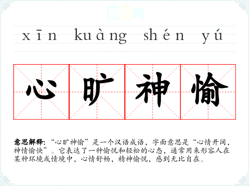 - 心情愉快:强调心情的愉悦,和“心旷神愉”类似。