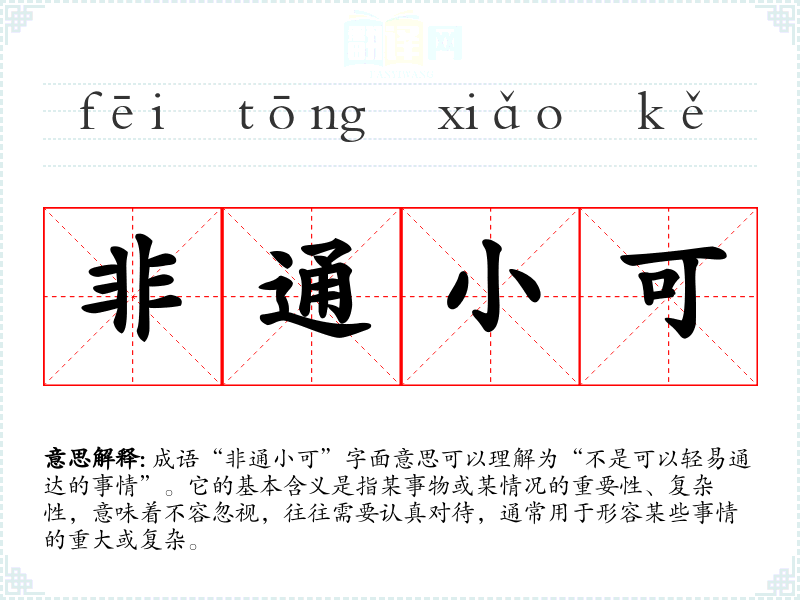 - 日常对话:在朋友或同事的讨论中,遇到一些复杂的问题时,可以用“非通小可”来提醒对方注意事情的严重性。