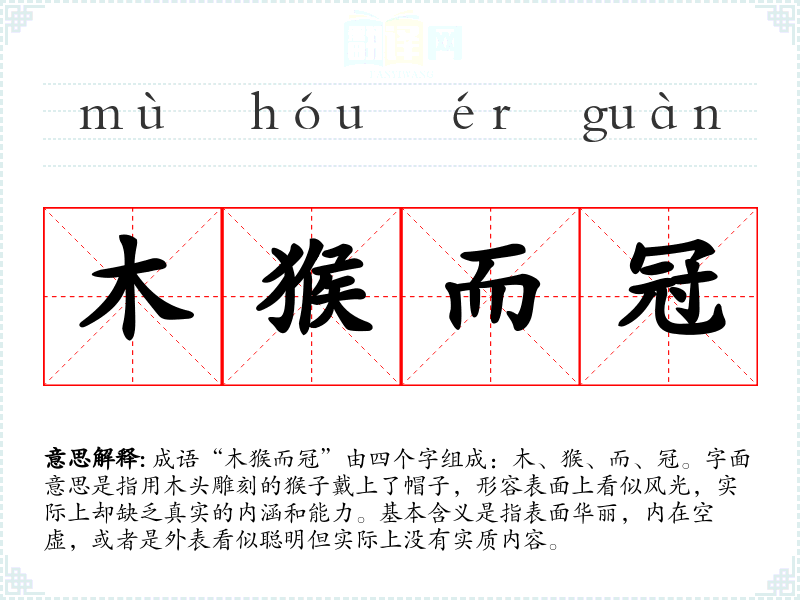 - 文学作品:在小说或散文中,作者可能将某个角色形容为“木猴而冠”,以揭示其虚伪的本质。