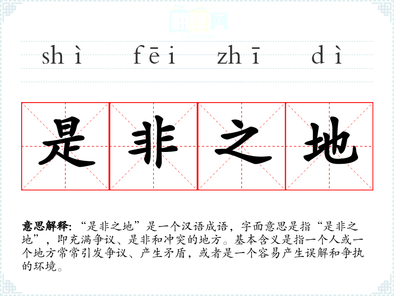- 日常对话:用于形容某个地方或某个群体的争议性,比如说“这个圈子就是个是非之地”。