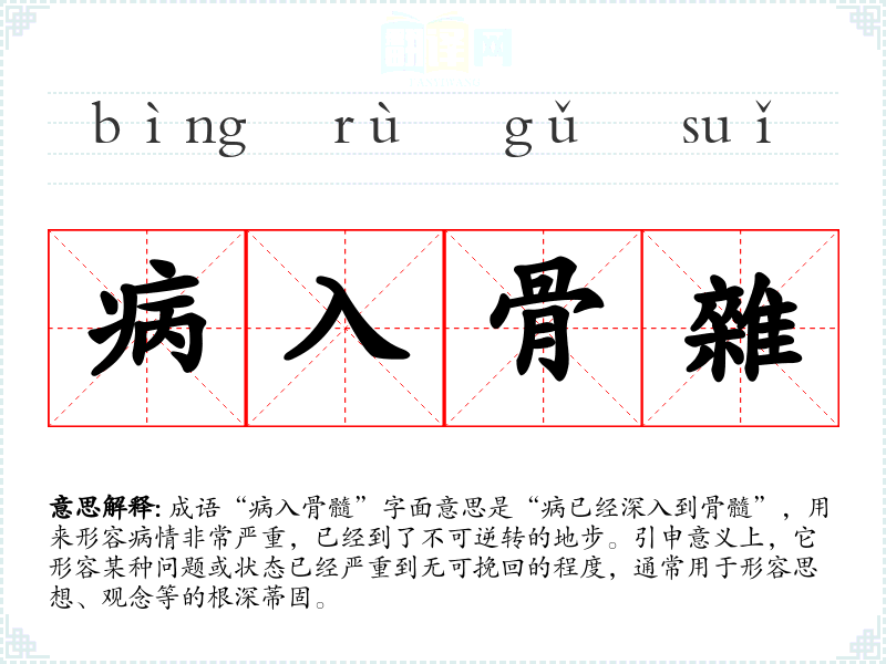 - 这些成语则表达了一种纯净、积极的状态,与“病入骨髓”的消极含义形成鲜明对比。