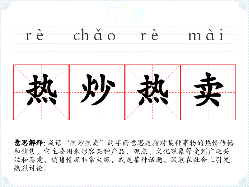 “热炒热卖”并不是传统意义上的成语,而是现代汉语中的一个常用词汇,结合了“热炒”和“热卖”两个概念。“热炒”通常指对某事物的热烈讨论或宣传,而“热卖”则指商品在市场上销售情况非常好。这个词汇的流行与市场经济的发展、媒体宣传的普及密切相关。