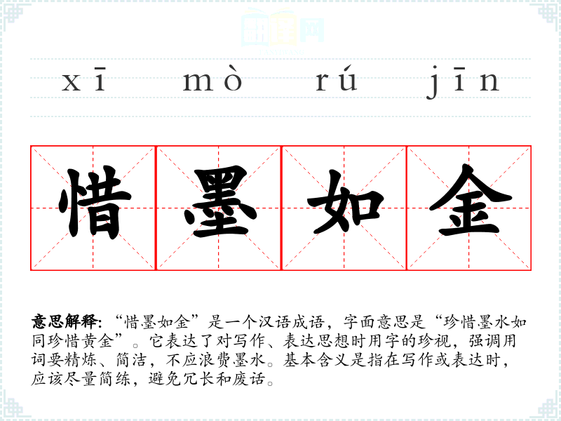 “惜墨如金”常出现在文学作品、演讲、写作指导等场合。在文学作品中,它可以用来评价一个作家的文风;在日常对话中,可能用于建议他人减少冗余的表达;在演讲中,可以提醒发言者注意语言的精炼。
