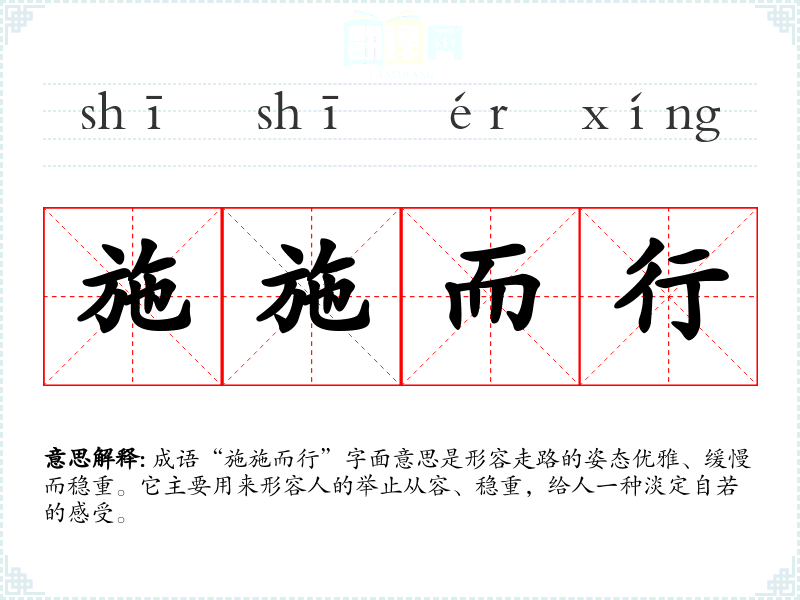 看到“施施而行”这个成语,我联想到一种优雅与淡定的生活态度。在快节奏的现代生活中,这种从容的心态显得尤为珍贵,让人感受到一种内心的平和与安定。