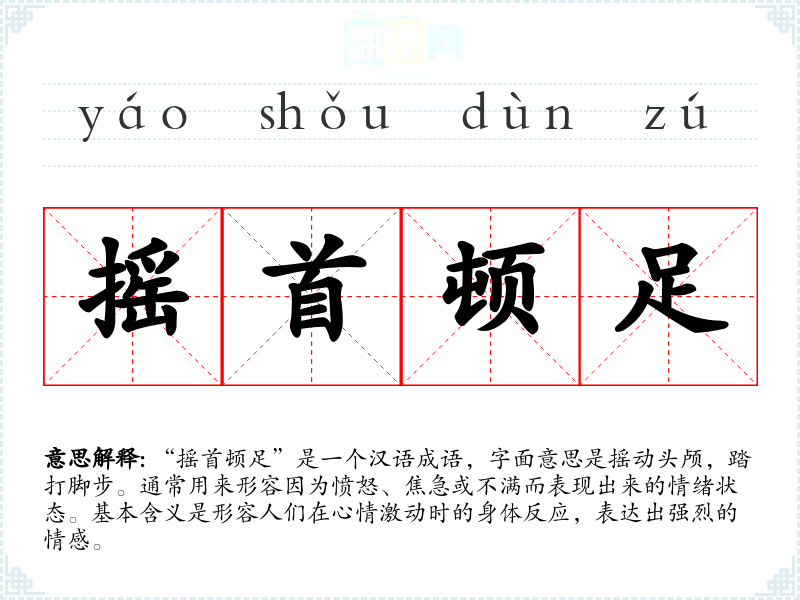 “摇首顿足”是一个汉语成语,字面意思是摇动头颅,踏打脚步。通常用来形容因为愤怒、焦急或不满而表现出来的情绪状态。基本含义是形容人们在心情激动时的身体反应,表达出强烈的情感。