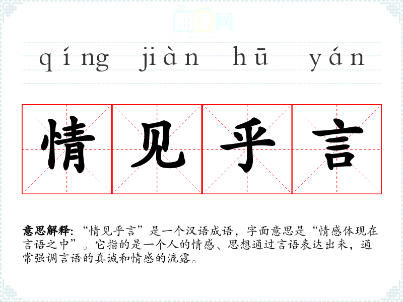 “情见乎言”是一个汉语成语,字面意思是“情感体现在言语之中”。它指的是一个人的情感、思想通过言语表达出来,通常强调言语的真诚和情感的流露。