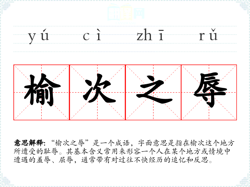 该成语源于历史上的一个典故,具体出自《左传》。据说春秋时期,晋国的一个大夫在出征时被敌国俘获,后来逃回,因其在榆次遭受屈辱而感到非常痛苦。这件事情被后人传颂,成为了一个象征屈辱经历的典故。