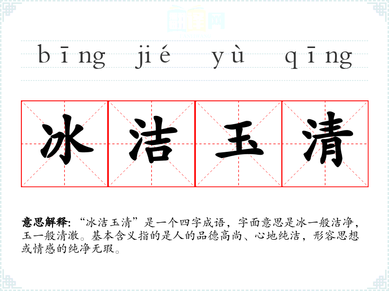 | 冰洁渊清 | 犹冰清玉洁。 |