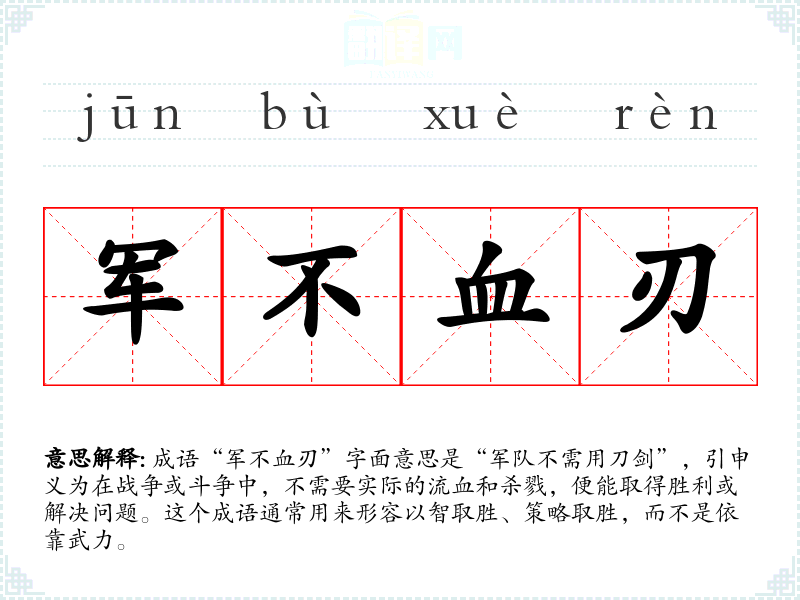 - 日常对话:在朋友间讨论某种冲突时,可能会提到“军不血刃”,表达解决问题的智慧。